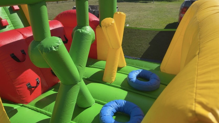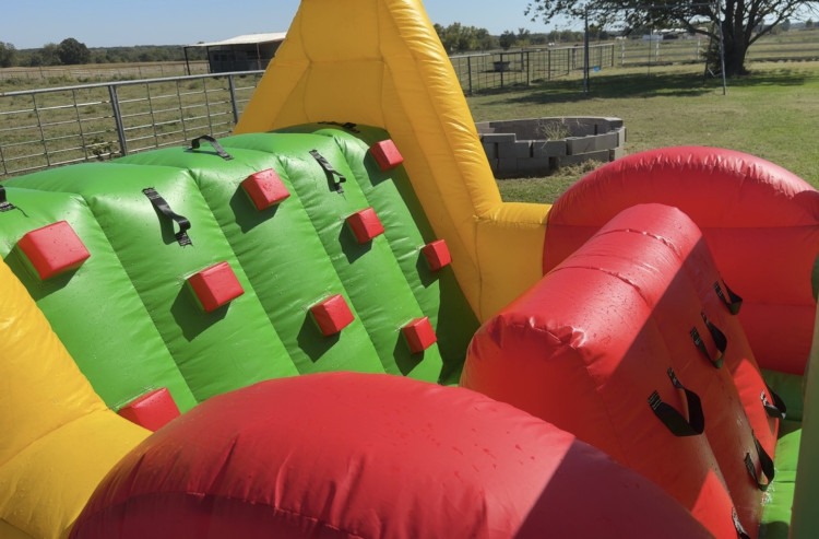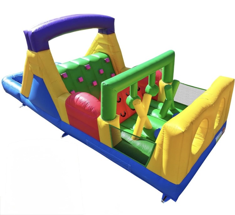 Mini Adventures Wet or Dry a compact unique obstacle course designed specifically for young children, offering an exciting adventure experience. The course features various challenges, including crossing obstacles and climbing walls, which participants will navigate before enjoying a fun slide. This versatile unit can be set up as a dry obstacle course for casual backyard parties, classrooms, or small events, or converted into a wet version for hot days by adding a sprinkler to the shallow pool to splash in. This mini adventure provides a safe, energetic play zone with soft, inflated walls for younger children ages 2-7 years old.